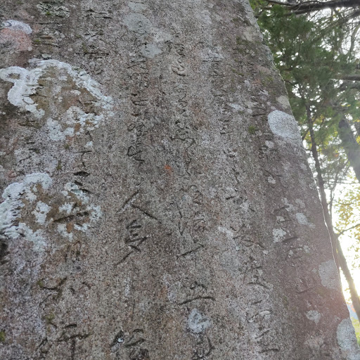 姿見不動尊由来碑 「抑々(ソモソモ)信濃国下伊那郡其原(ソノハラ)山に近き清内路の里に姿見不動の瀑布往昔宝暦年中より数度霊現利益有と雖も唯空然と年月を経過せり 然るに明治拾五年初秋の頃より有信の輩赫々たる光明を拝する人多し 依て参詣日に増(日に増す)と聞き駒ヶ嶽の行者此の地へ来たりて三七日(=21日)加行中瀑布の間に大日不動尊左右二童子を始め護法の善神幽に尊姿自然と顕われ賜ふを見たりしが故に敢て其の有増(アラマシ)を皇国に示さんと一平の碑を建て末世に伝と発起すと爾云(→云爾イウノミ) 明治十九年初冬 大成教 小埜先行」 上部紋章中の文字「神徳皇恩」...
