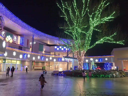 駐車場も広く、外に子供が遊べる遊具と小さな広場があります。コロナ前なら、夏になると広場に冷たい噴水が出たりとまったり、子供達が大好きな場所でした。冬は夕方から綺麗なイルミネーションが飾って、2月まで楽しめます。寒い日の夜たまに通るとすごく癒されます。