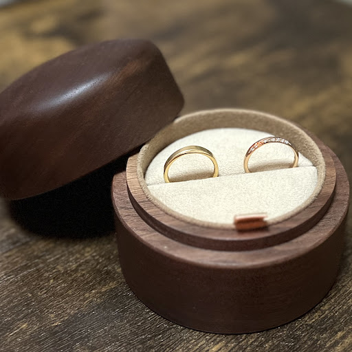 指輪は一見夫婦で異なるデザインですが、よく見るとペア感のあるデザインになっており、本当に満足です!胡桃の木で作られたナチュラルなジュエリーケースも素敵すにるし、アフターサービスも充実していて、一生大切に着け続けたいと思います💐