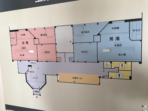 住宅地の中にあり、ゴルフ打ちっぱなしなど併設。大通りの極めて古い看板からも昔からありそうな温泉施設で土曜日14時、客は少なく5組くらい、内湯やサウナ独泉時間もあった 多くの皆さん外でトド寝 管理はかなり行き届き、きれいな部類。脱衣所中にはロッカーなし