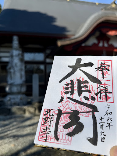 Read more2018/5/26拝受 真言宗豊山派の寺院。本堂前に御朱印所の案内があります。100メートル位離れた所に庫裏があります。矢印の通りに行けばすぐに分かります。御住職さま(お若い)はとてもお優しい方でした。新上州観音霊場三十三ヶ所第23番札所北野寺の御朱印...