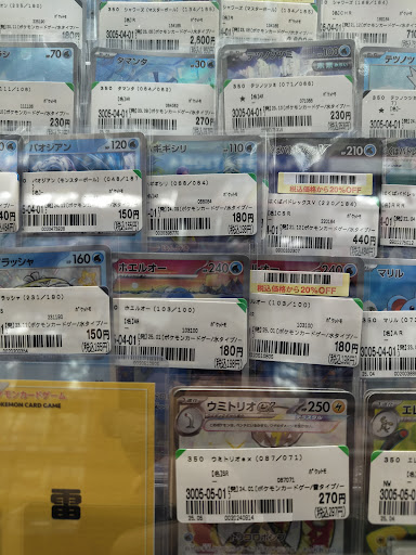 Read moreトレカを見るために良く通っています。ですが、スタッフによっては状態を確認せずそのまま会計に進もうとする男性店員がいます。本日そのままレジにいっても会計したのですが、購入後確認したら、傷無し販売で売ってたものですが、裏面を見ると傷が多数ありました。定員によっては対応が悪いお店なんですね。酷い商売ですね。ショーケース内のカード殆ど傷有りなのにそのままの値段で販売しているんじゃないかと錯覚し...