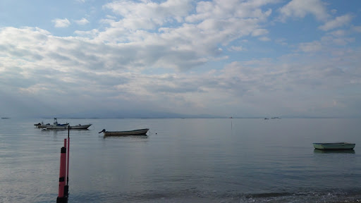 岸辺に僅かなさざ波の音が聞こえてきますが、波がほとんど見られない凪です。