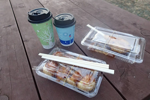 事故を抜けると渋滞もなく、すんなりPAへ到着しました。 売店のたこ焼きがとてもいい匂いがするので購入しました。 電気で焼くたこ焼き器なんですね。大玉でぱんぱんなのが美味しそうです。8個500円でした。焼きたての五平餅も購入しました。