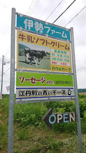 今年も もうすぐシーズンオフに なります各野外販売店になりますね まアイスは無くなりませんので 真冬でも食べますが…^^; 伊勢さんのソフトはまぢ旨いっすね いや今年初訪問になりますが時間帯 平日はお昼過ぎからなんですね… 勉強不足でした…取りあえず名物の ジャンボと思いましたがお母さんに 聞くと機械が古くなりあまり無理を かけたく無いと言う事で中止になり レギュラーからなのでそれをお願い しましたよ~うんうん少し残念でし たが相変わらず美味しいねぇ(^^)/ 受付台に貼ってあったブルーチーズ を買いました☆家で食べましたが うん 美味ですよ!勿論ソフトも 美味しく頂きました♪ 御馳走様でした~(_ ) またあのジャンボソフトクリームが 食べたくお邪魔しました♪ お母さんに聞くところやはり 今月の10日で終了との事です残念^^; また来年の楽しみにしますよ☆ 有難う御座いました~御馳走様( _) 江丹別峠 麓にあります 純粋なアイスクリーム屋さんです 牧場らしくD型ハウスに 入り口がありますよ☆ ジャンボソフトが値段を含め 魅力的~美味しい~♪ 他にもブルーチーズなども あるようですが常時は 備えてないようです・・・ でも...