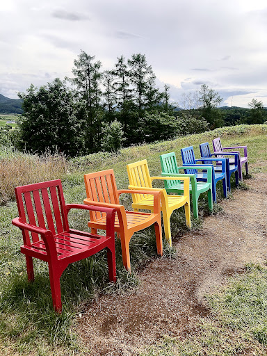 Read more上野ファームの中にある山(丘)で頂上には7色のイスや白いブランコ、縁結びのお地蔵さまがあり、付近が一望出来ます。 頂上まではかなりの急な坂道なので、上りも下りも足元に注意が必要です。 途中にどこで...