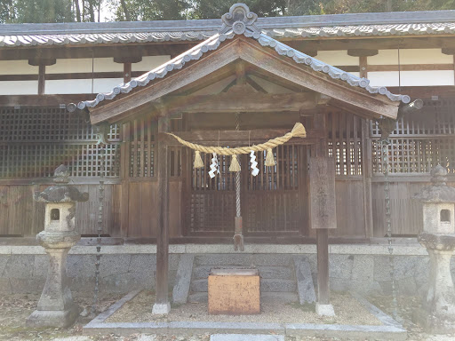 境内に自然石の立石がある。それは高さ約3m、幅約1.5m、厚さ約1mの片麻岩で、社殿の北側に東面して立つている。 これは飛鳥地方に見られる石造遺物の一種で祭祀遺跡あるいは結界石かとも思われるが、特別な伝承はない。
