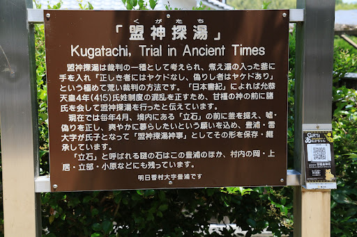 盟神探湯(くがたち)、と呼ばれる古代の裁判が行われた場所です。