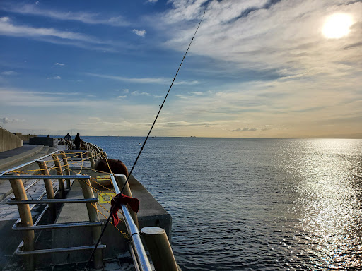 Read more非常に良い釣り場ですが、⚠️非常に混んでいます。青物や大物は外海側で釣れてましたが、平日でもなかなか場所確保出来ませんでした。 潮の流れの速さは飛び抜けていて、激流でした。激流プラス混雑では釣りになりません。 泳がせ釣りのおじさんは、浮きを空中に浮かせて謎の釣り方になっていました(笑) 60gのジグでは底が取れませんでした。 夕方5時過ぎに、少しだけ空いた隙間に入らせて貰えました。潮の流れが収まった時でした。釣り疲れたほとんどの人が竿を置き、休憩していました。 ガクンと根がかりと勘違いした手応えが、初めてのショアジギングでの青物となりました。62センチのメジロクラスでした。周りの皆さんがアドバイスしてくれ、タモ入れしてくれ、おめでとうと祝福してくれました。 初心者には簡単な釣り場ではありませんでしたが、楽しかったです。 あの激流タイムと混雑を思い出すと、すぐまた行き...
