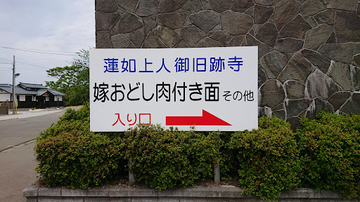 Read more小さい頃漫画で読んだ肉付面を見に行きました。 受付の元気なおばあさんがずっとつきっきりで説明をしてくれました。 肉付面はお面の前の床に立つと簾があがってお面が表れるようになっています。 うちも浄土真宗と伝えると、話が盛り上がりました。 吉崎御坊への行き方も丁寧に教えてもらいました。 蓮如上人像は高村光雲作の...
