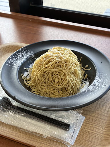 駐車場:あり イートイン:あり(窓際カウンター10席) 食べたもの:わの栗のわモンブラン ¥1500 来店時間:2025/11/03 15:00 感想:長野の5地域から栗が集まるお店。ここ最近ずっと小布施のモンブランが食べたくて、でも遠くて行けずにいたので、美味しい和栗のモンブランが食べられるお店が近くにできたと聞いて行きました。 目の前でモンブランしてくれる(言葉わからないけど絞り出すところ見せてくれた笑)のが見ていて楽しかったです。 モンブランの中には和三盆味のメレンゲの様なものが入っていて、サクサク甘くて美味しかったです。モンブラン部分が甘すぎないので、和三盆の優しいけどしっかりした甘さとの組み合わせが良かったです。 他の商品も気になるものがたくさんあったので、通いたいです。 また、各地域の栗についてのパネルもゆっくり見に行きたいです。