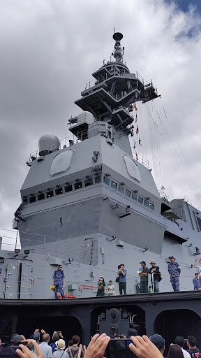 Read more2025年7月19日は護衛艦かがが寄港してイベントが開催。 イベントスタートの9時には、観光港と観光センターの駐車場は満杯。10号線とその海側は大渋滞。シャトルバスも身動きが出来ない有様。 10号線は日出町境まで渋滞。 乗船まで30分以上の人波。 乗船後は艦内スペースから前部エレベーターで甲板へ。 和太鼓の演奏やヘリの展示がありました。 なかなか、日頃見ることが出来ない体験でした。