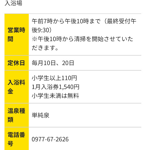 Great experience at this local onsen, ÂĨ100 entrance, pay at the reception where you can also get your onsen stamp, friendly staff, there is parking. You need to bring your own towel and shampoos. No lockers, you might not have direct view of your stuff while bathing depending on your position. Large and clean tub with a lot of space around it to wash. Was busy when I went but the locals were extremely friendly! We chatted and laughed all together for all kinds of things, even with my limited Japanese,...
