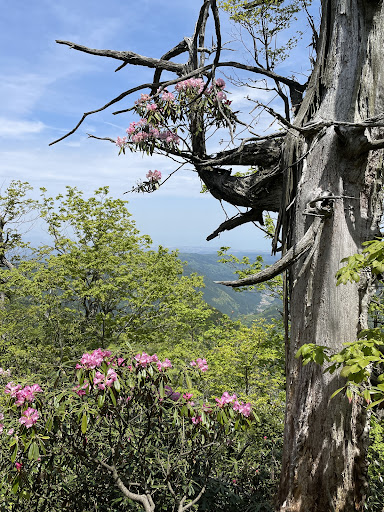 その後、釈迦岳を経由し笈吊峠へ。 笈吊岩は立入禁止になっていた為、安全に迂回しながら進みます。ここからは苔むした静かな登山道が続き、やがてウグイス谷へと下り、駐車場へ戻るルート。下山時も慎重に歩く必要がありますが、最後まで変化のある道を楽しめます。
