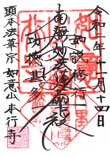 本行寺は顕本法華宗に属し、文明元年 (1469) 日泰上人の開基で宗祖の大曼荼羅を本尊とし ています。 当初浜村(現浜野町) 東方の谷に道場を構えましたが、 その後上人の熱意により帰 依した土気城主酒井忠孝が広壮な伽藍を建て、いわゆる 「七里法華」の根本霊場としました。 天正18年(1590) 戦国時代末期の戦火にあって焼失し、 その後現在の地に再建され、朱印地10石、衆6坊、末寺7、門前地 26戸を有する近隣の名刹でしたが、 昭和20年 (1945) 戦災に遭い焼失しました。 現在の諸堂はその後順次再建されたものです。 これらの災禍により寺宝書跡の多くが失われましたが、それを免れた寺宝のうち、 北条家の禁制 (元亀2年) 9月2日付) などの文書や不受不施派関係の書状 日泰上人の本尊など...