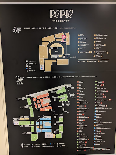 This is the 4th floor of Perie Chiba. The location can be reached without going out of the gate (certain place only like clinic, drugstore, etc) So when you arrive JR Line Chiba station, go to 3rd floor then change the elevator which connecting you to 4th floor (make sure I'm front of elevator has a map looks like this). Then you will arrive inside. And also this can be accessed even if the Perie itself not open yet. But can not all shop is included. If you want to shop outside gate, on each floor you can go out by tapping on the...