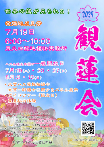 Read more昭和26年に大賀一郎博士により、オオガハスが発見された地。 オオガハスは、2000年前から存在したとされる蓮で花弁数は14〜24枚、花径は15〜28cmととても大きくて見応えのある一重咲きの蓮です。花色は淡紅色。極早咲き性。