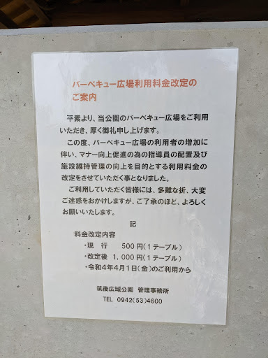 Read more広々として、気持ちの良いバーベキュー広場です。料金も500円と安く、設備も充実しています。バーベキューセットも500円追加で借りられますし、オススメです。ただし、トイレが故障中らしく、仮設トイレがたまにキズ。女性陣はお困りのようでした。 また、桜が沢山植えてあるようでしたの...