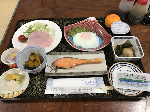 No bathroom in room - 2 female toilets for the whole hotel. 3 sinks for ALL guests to share. The futons were charming but we had to make them up when we arrived. Walls are thin so you can hear your neighbors talking and walking around. Restaurants in the area are alright - we had pretty decent Yakiniku but there aren’t too many other options. Breakfast was traditional Japanese and quite big.