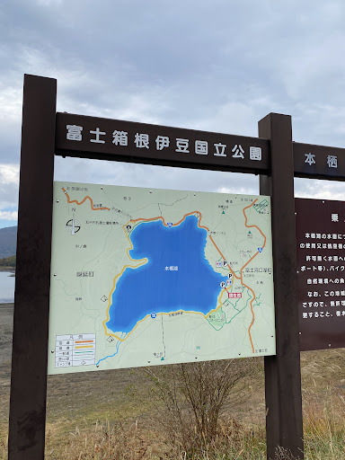 湖畔道路沿いの無料🅿️駐車場🏖️ビーチ🏖️に日除けテント⇒人盛り⇒サップの練習場所に最適な環境⇒遠浅の浜辺~ 上達した際には、紺碧の本栖湖中心部からの、富士箱根伊豆国立公園内の大自然を満喫出来ます。