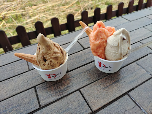 左のシングルがエスプレッソチョコチップ、右のダブルがブラッドオレンジとヘーゼルナッツです。パンも販売していて、水の代わりに牛...