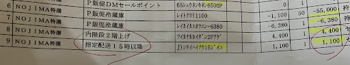 また、ノジマには搬入してもらってないのにこちらが先に支払っている2階上げの搬入費用の4400円返却の話は一切なく店の代表から連絡拒否された。 これは流石に返してもらえるんでしょうか。 ずっとやりとりをしているのに3人とも伝票の見返しすらしてないから気づかないんでしょうね。 運んでもらってもないのに4400円取られてます。 電話に出てもらえないので、ここに写真も添付するしかないです。 費用の写真添付しますので対応してください。