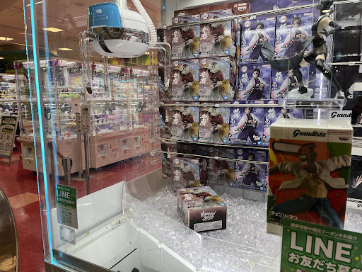 Read moreフィギュアのこの店舗独特な設定台の感想です。(写真取り忘れたので説明が難しいですが、こちらの店舗に来られたことがあればすぐに分かる設定台です) アームパワーいまいち、加工制限厳しめ、ねじれ強め、ワンプレイ200円で、自分がプレイした時は沼りに沼って、定員さんにアドバイスを求めましたが、よく分かってない方(こういう店舗なので致し方ありませんが…)がよく分からないアドバイスをされていて、結局獲得を諦めました。 別の日に他の方が同じ台でかなり沼っていたのを見かけたので、応援して見ていたら、女性店員の方が取り方のレクチャーを頻繁にしており、プレイしている方の近くに立って見守っており、獲得できるまで一手ごとにアシストし直していたので、星2つつけましたが、基本他の店舗で狩り尽くされて取れなかったフィギュアがここにあってどうしても取りたい!などの理由が無ければ、プレイされないことをオススメします。 3本爪のフィギュアは台によっては比較的取り...