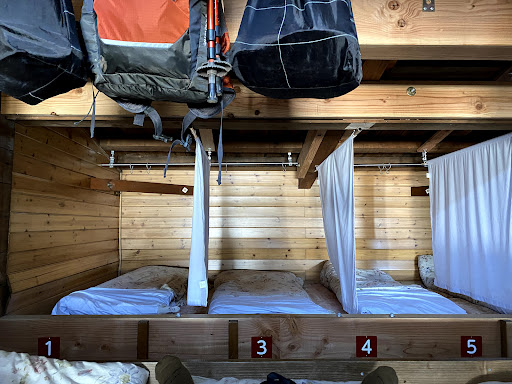 Read moreIt is important to note that this is a mountain hut, so is very much focused on function rather than luxury (but if you're expecting luxury maybe Mount Fuji is not the place for you!). My rating is based on how well Goraikoukan fulfils this role.||||The last 3 hours of our climb before reaching Goraikoukan were in absolutely torrential rain. We were soaked to the skin, nothing that we thought was waterproof was waterproof anymore (including our backpack covers, jackets, trousers, shoes, and the spare clothes we'd brought for the colder temperatures).||||The staff got us into the hut quickly and provided carrier bags to store our wet clothes in, although a lot of people (us included) wrung clothes out and hung them over the wooden beams to try to dry them out. The hut actually gets quite warm once it's full, so we did find that our clothes were just slightly damp rather than soaking by the time we put them back on a few hours later. There is a small curtained area which can be used for changing.||||The beds are small, but comfortable and the quilts are warm. Just to note, men and women in the same areas. You get your own pillow and quilt, but everyone sleeps packed in together so you're going to get cozy. We slept fine.||||There are two options for dinner and breakfast - Japanese (ramen) or Western (hamburger). Our tour company had booked the Western option for us. Both meals were fine for refuelling after a long climb and before the trek up to view the sunrise.||||This is the highest hut before the summit. It does mean you're climbing for longer on the first day, but we found that it was great for getting ahead of the crowds to get a good view of the sunrise from the summit. We'd definitely...