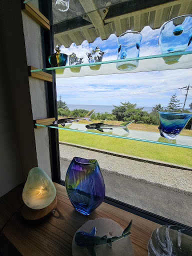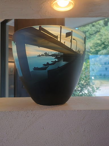 Read more宿の女将さんに教えて貰い立ち寄ってみました。 無料駐車場も有り、越前海岸をながめながら、山の景色を見渡しながら楽しむ事が出来ます。 ゴールデンウィークイベントで敷地内に色々な工房、ショップが建ち並び 作る、買う、食べる、遊ぶ等、子供から大人迄 一緒に楽しめる様になっていました。 スタジオ内では、綺麗な色んな作品が展示されており、ショップの直ぐ隣の部屋で、製作風景も見る事が出来ます。 又、有料ですが、ミニプレート制作体験、フォトフレーム、ガラススタンプ制作体験、吹きガラス体験も予約をすれば体験できるようです。 オーダーメイドの相談や記念品等の制作も受け付けてくれるみたいです。 大人から子供迄見たり、作ったり、購入したり出来るので1日楽しめると思います。 趣有る人にはたまらな...
