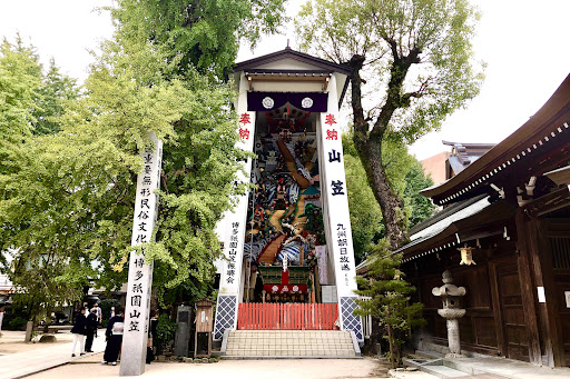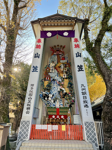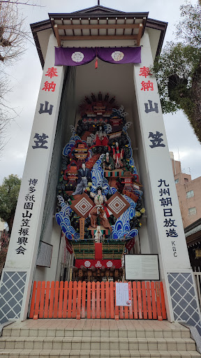 櫛田神社の境内には飾り山笠...