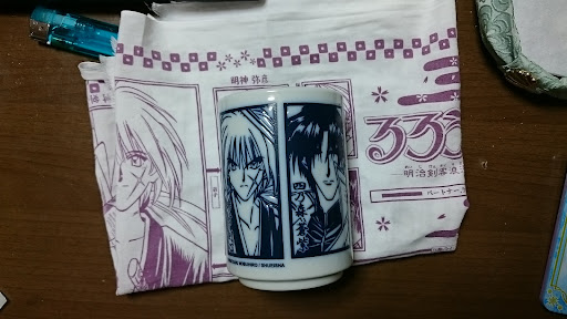 Read more買った当時 「るろうに剣心」の湯呑みと手ぬぐいを購入していました。 カッコ良いデザインです。 使い道はもちろん、仕事お休みの日にスポーツセンターで競泳練習の時に利用しています。 (ジャンプショップ 福岡店では「るろうに剣心」の湯呑み 「るろうに剣心」湯呑みデザインには最強四天王である四乃森蒼紫や緋村剣心、相楽佐之助、齋藤一が描かれています。 さらに他店舗にあるジャンプショップ 東京店では「るろうに剣心」の手ぬぐいを購入 「るろうに剣心」の手ぬぐいデザインには相関図が描かれています。) また私のお父さんと私の好きなアニメ:「エヴァンゲリオン」と言う肉弾戦のあるアニメが大好きです😊(ジャンプショップとエヴァンゲリオン 全く関係無いのでごめんなさい😭) その私のお父さんと私の好きなアニメ:「エヴァンゲリオン」と言う肉弾戦のあるアニメが大好きですが・・・「エヴァンゲリオン」より最強のライバルとして人気があった(⁉)アニメは鳥山明先生の漫画とアニメ:「ドラゴンボール」シリーズ(ドラゴンボールからドラゴンボール超迄)は他のマンガとアニメと比べて「ドラゴンボール」シリーズが人気No.1だったので「ドラゴンボール」が好きな方は日本だけではなくフランスやらアメリカ、イタリアや上海、韓国、香港最後に台湾等 それぞれの海外でも人気が高いのです。(ドラゴンボールのアーティストは影山ヒロノブさんと「エヴァンゲリオンの歌姫」でお馴染みの歌姫:高橋洋子さんと共演した事があるアーティスト:氷川きよしさんが担当させて頂きました。) ジャンプショップ福岡店に行って買い物せずにジャンプショップ福岡店の出入口(エントランス)入ってその奥にそれぞれのカードゲームがあり、人気No.1ゲームはもう勿論、2010年からスタートしたカードゲーム:「スーパードラゴンボール ヒーローズ」(過去は邪悪龍ミッション、暗黒龍ミッション、神ミッションもラインナップされていた。 現在はユニバースミッション好評稼働中)と言うカードゲームがありまして私はそれ(スーパードラゴンボール ヒーローズ)をプレーし、全部失敗してしまう為 スーパードラゴンボールヒーローズでのプレーは出来ないのですがそれ(スーパードラゴンボール ヒーローズ)が設置されており、客層的で言うなら小学生前後の男児から小学生前後の男児を持つ男性が多くプレーしているのである...