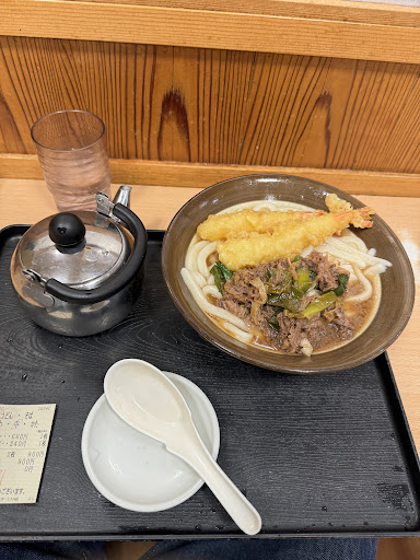 I got the meat udon with a side of shrimp tempura. And it was only 900JPY for a relatively large bowl of food!