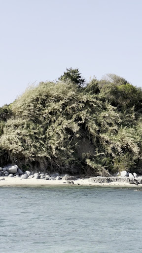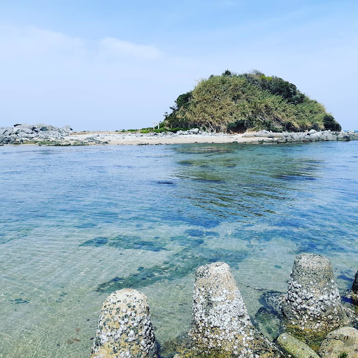 干潮時には岩伝いに歩いて渡れます 海藻がぬめってるので滑らないよに注意してください。