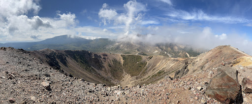 Mount Azuma-kofuji is an active stratovolcano in Fukushima prefecture, Japan. It has a conical-shaped crater and as the name "Kofuji" suggests, the shape of Mount Azuma is like that of Mount Fuji.