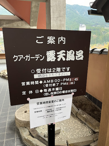 Read moreA lovely onsen in a nice spot from which you can see the mountains and Riverside or Gero. In spring there are sakura and in autumn roses.