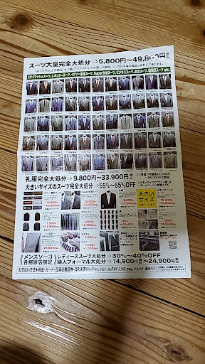 Read moreこちらのお店を知ってから、スーツはいつもこちらでお世話になっています。 スーツは生地の品質が良いにも関わらずお値段がお手頃で、通常の紳士服店には行かなくなりました。 スーツ以外にもシャツや靴、バッグやネクタイなども品揃えされており、ビジネスに必要なものは一通り揃います。 実際、息子の就活の際は一式こちらでお世話になりました。 先日は仕上がったスーツを受け取りに行ったところ良い感じのカバンが並んでおり、お店の方に聞くと流通過程でたまたま手に入ったオススメの品との事で、衝...