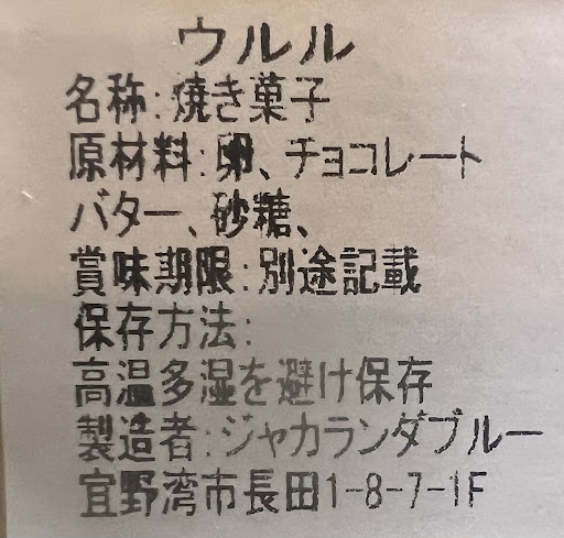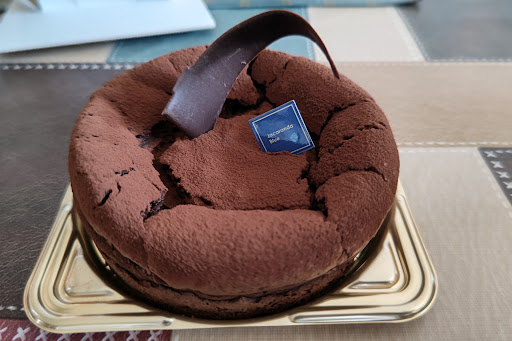 Read more息子の誕生日用ケーキに「ウルル」を買ってきてもらいました。見た目と味はガトーショコラです。ケーキ箱に貼られたシールを見ると、原材料が「卵、チョコレート、バター、砂糖」の4つのみ...。 小麦粉使わないのか...?グルテンフリーにしたんだ。 どんな味だろう、相当美味しいんだろうか、と、ワクワク予想、想像しながらいただきました。 食した感想、「素朴な味わい」が似合う。カカオ本来の苦味がしっかりと舌に残るので、チョコをゆっくり味わって食するのを楽しめる人には非常に美味! 板チョコのような甘過ぎるチョコに飽きた人は是非食べてほしい。 メレンゲでフワっとさせた状態から焼いたのか、中心の陥没具合がどのようにしてできたかを想像しながら切り分...