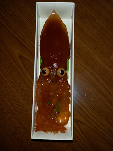 Read moreネットで見かけたイカ羊羹を買うために行きました。(電話で事前に予約をしておくと良いと思います。発送もしてくれます。) お土産として差し上げた方々から「見た目が凄い(笑)」「リアル」「爆笑」等々の反応が返って来ました。 自宅用にも一つ買って食べてみましたが美味しかったです。こういう形にこだわったものは味がイマイチなものがあるのですが、これは見た目も味も良くコーヒーに合いました。