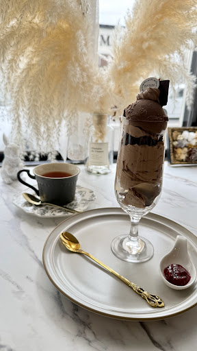 今回の注文 チョコレートパフェ 1,500円 紅茶 300円 米粉ロール 350円