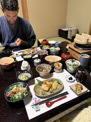 The food? I'm still dreaming about it. My photos do NOT do it justice. Dinner is a course meal served each course at a time - our meal was served in our room however our friends in another room (a group of 4) were lead to a private dining room. Breakfast has options between a western style and a Japanese style breakfast - we opted for Japanese but the option was nice for our other group! Every dish we had was different during our stay, and though a small detail, so was all of our dishware!! I didn't see a single plate reused which was not only impressive but a fun little detail for me personally.