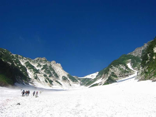 ハイキングや登山を趣味とする人ならば、少なくとも1度は噂を聞いたり興味を持つであろう場所。 日本最大の雪渓だけあり、コースは長大で真夏でも万年雪の涼しいコースを歩く事が出来る。 景色は変わり映えしないが、雪渓の上という非日常感がたっぷりと味わえる。 ただし、急峻な谷間の底にある場所のため落石は頻繁に起きているようで、大きな石があちこちに転がっているので長い時間留まるのは止めておいたほうが良いかも。 また、雪渓はかなり急傾斜の場所もあるので、アイゼンなどの滑り止めを装着しないと滑りやすく危険。 アイゼン無しで歩いている人を見掛けたが、おっかなびっくりでゆっくりと歩いていた。 雪渓の下の方は、アイゼンの脱着で止まる人が多く、更に人気の山域という事もあり混雑しやすい。 混雑を避けようと、コースを少し外れるとガレ場の浮石で落石を起こしやすいので要注意! この辺りは本当...