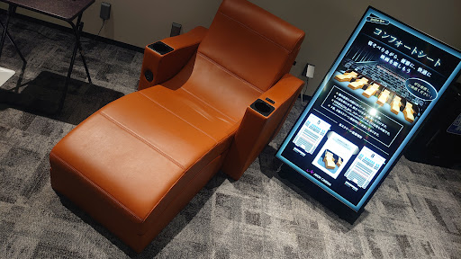 ドルビーATMOS&アップグレードシートにて利用 値段は1600と高くなりますがドリンク(L)が付くと思えばアリ。 シート左右の距離が空くのでお一人様向け(?) カップルや友人と利用するならアップグレードシートの後ろに板があるので 後ろの席を予約するのもありかもしれません。 目薬しても後ろの人には見えません。 あとは前の席。 (余談ですが最前列側中央に車椅子の席が2席ほど設けられています) シートはゆったり座れます 左側ひじ掛け下に荷物置き場、 右ひじ掛けにドリンクホルダーあり。 隣と荷物置き場で距離があります。 車の後部座席の様なグレーのプラ板で隣と仕切る為、広いプライベート空間が確保出来ます アップグレードシートからスクリーンを見ると少し見上げる様になるのが辛い。 (家庭でホームシアターやサブスクで映画を見る人でも利用しやすくなりました) スクリーンはラウンドしておりどの席でも見易く音も良いですが少し中高音がキツく低音が弱めに感じました。 アニメだと活かしきれない気がしたので次はハリウッド映画等で評価してみたいですね