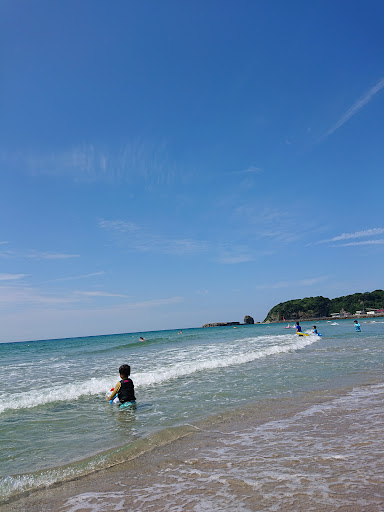 Fantastic beach park Kofuku is in the Iwami seaside coastal area of Hamada. Long white sandy beach, some waves, shallow & safe for swimming most days. Surfer love the left side (looking to sea) for eaves throughout the year. Right side has red lighthouse & interesting cave & Tatamigaura rock shelf with tidal pools & small beach worth exploring.