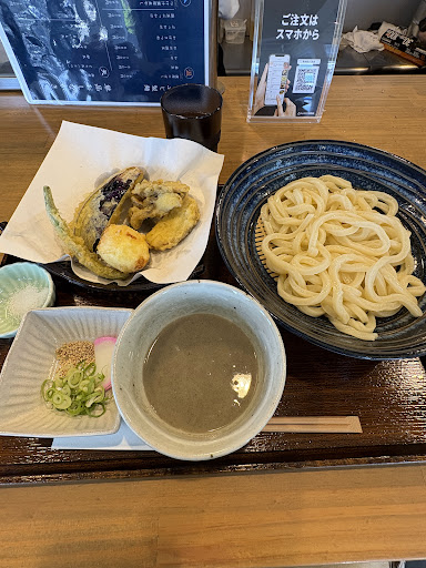 [冷]つけ汁濃厚煮干しうどんのとり天盛セットを食べました。煮干しラーメンが好きで似たような味を想像していましたが、やや塩味は少なめであっさりとした感じがしました。 うどんはコシがありしっかりめの食感で、好きなタイプのうどんでした。 天ぷらはとり天はもちろん美味しかったのですが、ナス天の美味しさに驚きました。他のチェーンでもナス天を食べますが、美味しさに驚いたのは初めてです。