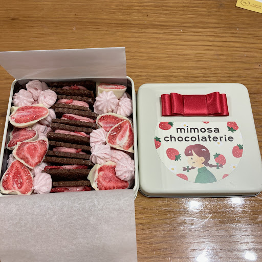 ホワイトデーでいただいたので、店内雰囲気はわかりません。 こちらのお店は存じていてとても人気だと聞いていたので、貰った時は嬉しくて楽しみにしていました。 イチゴ缶をいただきました。 見た目すごく可愛いです。 名前通り、イチゴのチョコとサンドクッキーが可愛らしく入っていました。 その隙間を埋めるようにイチゴ味のメレンゲが入っていたのですが、これがとにかく多くて残念な気持ちになりました。 メレンゲも嫌いじゃないですよ。 ただもう、緩衝材並に入ってて、メインのチョコより入ってるよねというくらい、底がメレンゲだらけでした💦 ケーキの飾りみたいに少し食べるならいいのですが、結局砂糖の甘さだし、、、 食品だから食べなきゃなあと思ってチョコと一緒に食べるのですが、量が多くてメレンゲの甘さが勝って、大事なチョコの味が感じられないときがあります。 チョコレートの方は噂に違わず美味しかったです。 一緒の値段ならチョコレートだけで、箱小さくてよかったな。。。 メレンゲって皆...