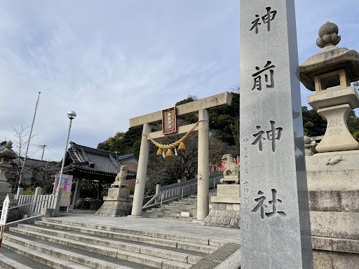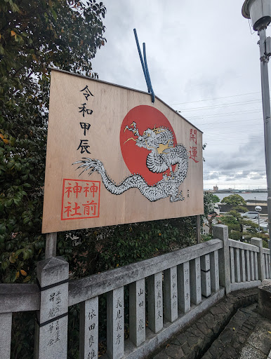 Read more愛知県半田市亀崎町にある神前神社(かみさきじんじゃ)。御祭神は神倭磐余彦尊(かむやまといわれひこのみこと)=神武天皇。創建は不詳であるが、社伝によれば神武天皇は東征の途中に伊勢国から船でこの地に上陸した。この逸話による神嵜(かんざき)が亀崎(かめざき)という地名の語源とされる。上陸地点は天神洲(てんじんす)と名付けられ、小祠を建てて産土神として崇敬されたのが神前神社の創始であるとされている。