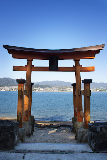 Read more長浜神社は、厳島神社の管弦祭と大いに関わりが深い神社です。地御前神社から戻ってきた御座船は、こちらの神社の前で祝詞をあげ、雅な演奏が行なわれるのだそうです。 厳島神社の大鳥居にそっくりな朱色の大きな鳥居が浜辺にあるところからして、心惹かれます。厳島神社の摂社・末社の中でも、雰囲気が本社にそっくりなのがこちらです。ご本殿は似ておりませんが、鳥居が。しかも、管弦祭の時、その麗しい鳥居のあるところで雅楽が演奏されるなんて。