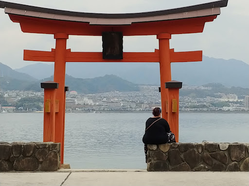 Weirdly the shrine is much closer to the JR ferry terminal than Itsukushima. But while we waited out the crowded terminal we saw maybe 1% of the people going left (looked like locals and business men) so we decided to avoid the crowd and go with them. Totally worth the walk. All you can hear is starling and crow and the ocean lapping at the torii. The air is still but not oppressive, more like its holding you in place to see the spirit of love with which it was built.