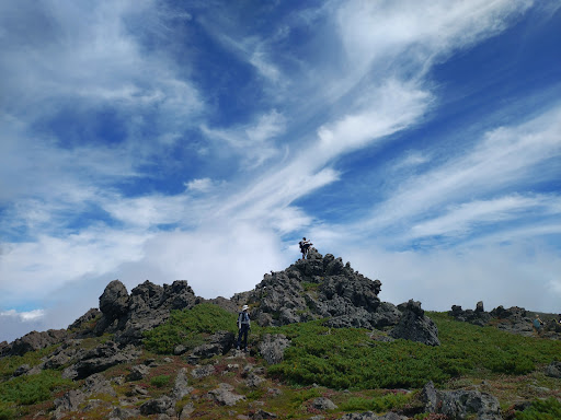 石室から子供連れでも30分かからず登れます。藪の中をとことこ歩いて山頂まで。朝はご来光、雲海を見られます。晴れていると、上川町の街が遠くに見えます。山頂標識は無かったので、ごつごつ岩に上って「ここを山頂とす...