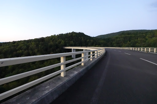 Read more嶺雲橋(れいうんはし)は北海道道1116号(富良野上川線)の山岳部にかかる全長406mの大きな橋梁です。ここからの"ミニ三国峠"との異名もある超開放的な景観は圧倒的で、周囲に樹海が広がり、その遠方には旭川市街の平野部を見下ろせます。 昔は道路趣味者と地元民のみが知るマニアックスポットだったはずが、近年すっかり観光地化してしまったのか、秋口の正味1か月ほどの短い解放期間に観光客が集中的に訪れるので、朝から夕方まで橋の上にはたいてい何がしかの車・バイクが停まってます。橋の写真を撮りたい方は来訪する時間帯や曜日をよく検討しましょう。 南側のいわゆる「チョボチナイゲート」側のルートは狭隘屈曲の激しい区間ですが、同時に引っ切りなしに来訪者の対向車が来ますので、細心の注意をはらっ...
